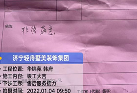 貴府的工程已全部圓滿竣工并通過(guò)了竣工驗(yàn)收,感謝您在整個(gè)過(guò)程中對(duì)于我們的理解、支持和包容。輕舟美住裝飾張興魯工作室提前恭賀您和家人喬遷新居,恭祝您和家人生活幸福美滿、事業(yè)蒸蒸日上。